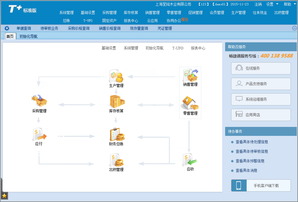 可实现对企业本地采购、销售、仓库、生产、财务的规范化管理