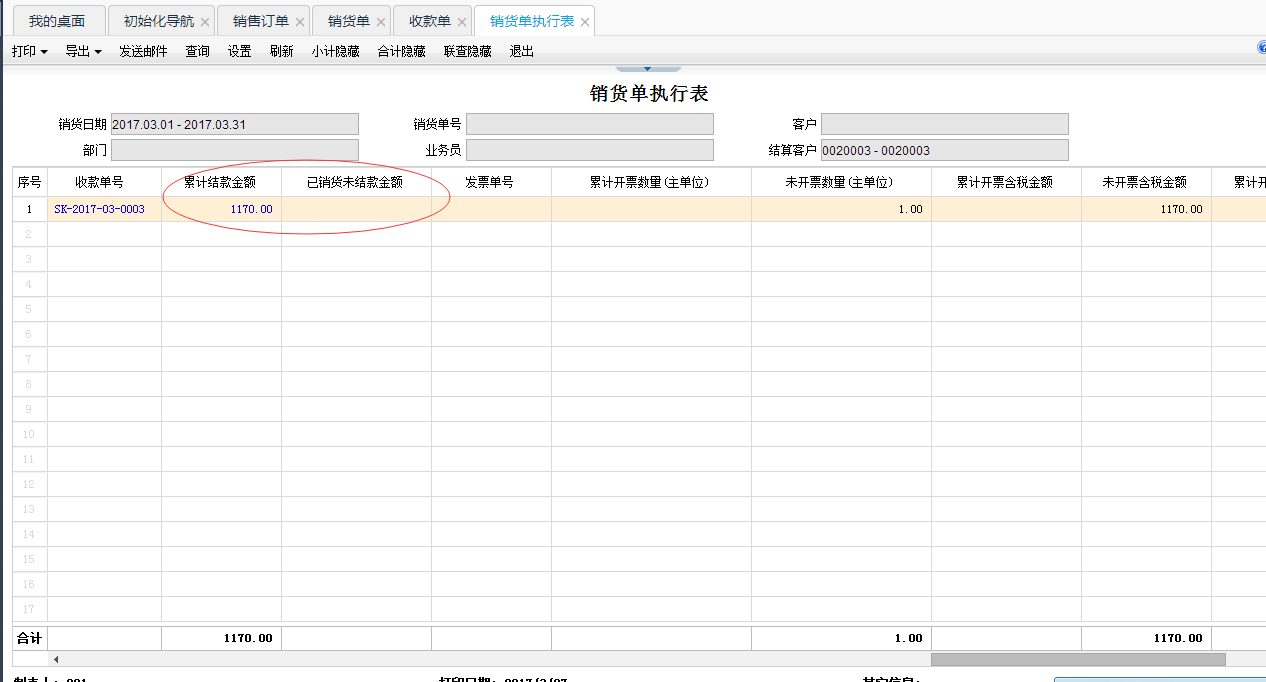 5,在销售模块,点“销货单执行表”进行查看结算情况。