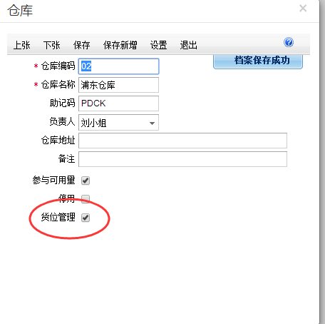 3)设置仓库的货位档案
