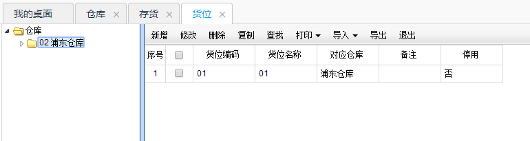 操作:基础设置→货位→对应仓库