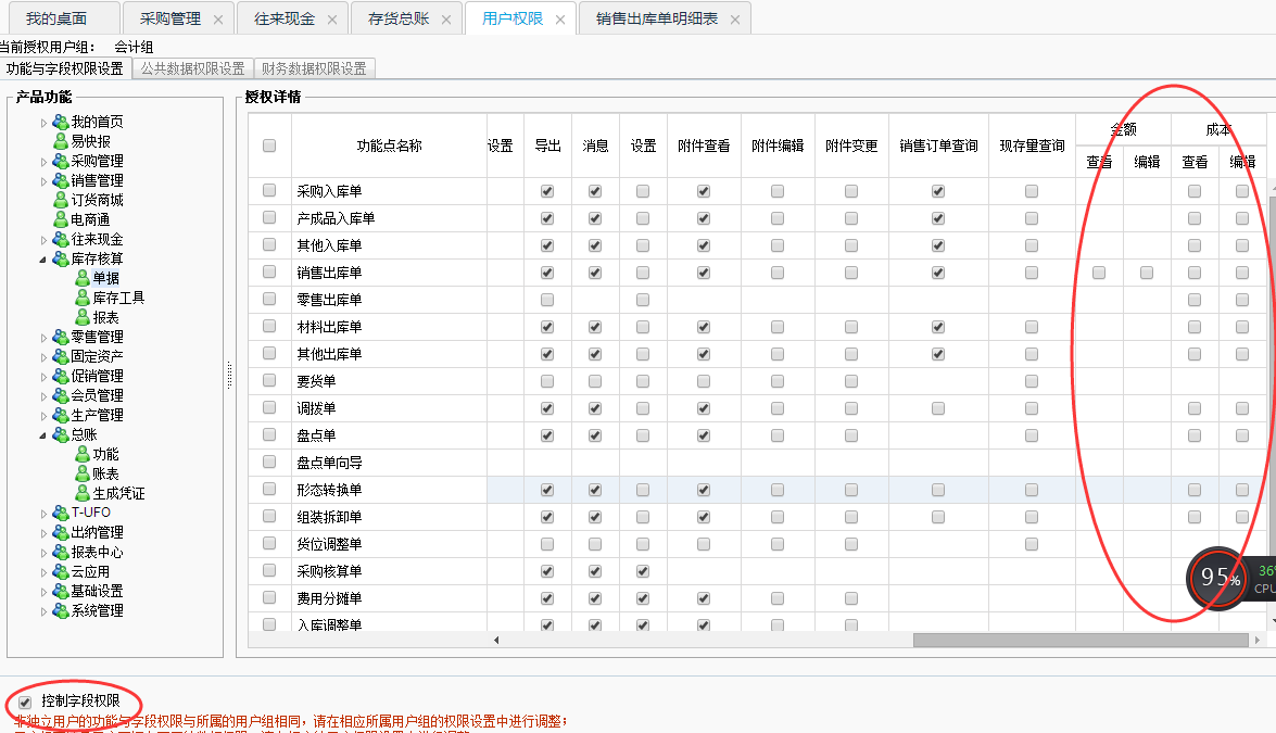 操作方法:系统管理,用户权限,选择用户组用户,勾选控制字段权限,取消操作员查看金额和成本的权限。