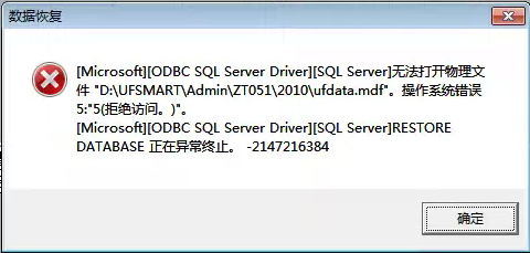1)找到现在服务器的安装目录,将xxx.MDF与xxx_log.LDF文件,右键-属性-安全-在组或用户名处添加Authenticated Users-更改该组权限为完全权限,再次恢复账套成功。