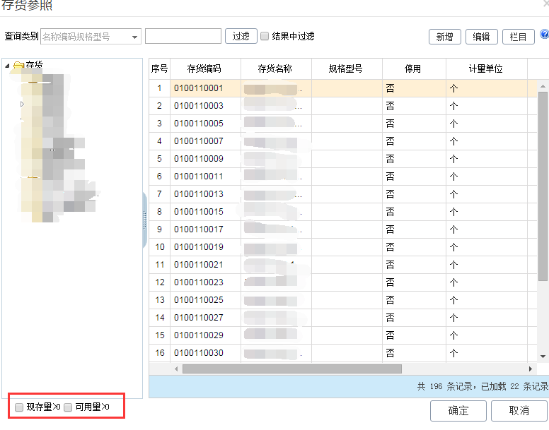 2、存货参照,不要现存量及可用量勾选大于零小于零等于零的选项。