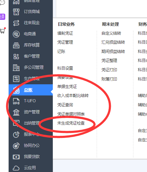 鼠标移至总账——未生成凭证查询