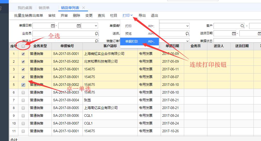 然后筛选出所需打印的单据