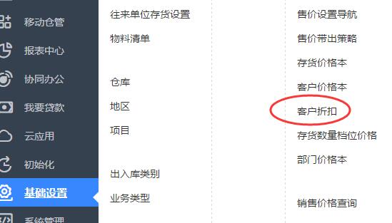 一、打开【基础设置】——【客户折扣】