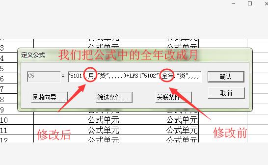 双击对应的格,弹出公式定义,我们把当中的全年字改成月
