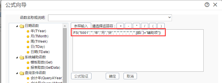 第三步、在UFO报表公式中设置公式“部门=辅助项”: