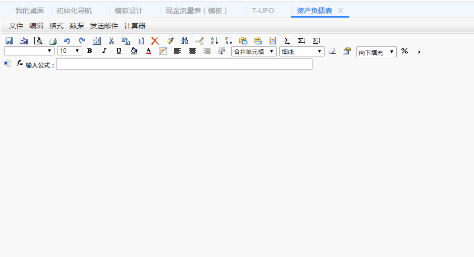 问题:用T+浏览器打开畅捷通T+软件,打开T-UFO报表,打开资产负债表无法显示报表数据内容。如图: