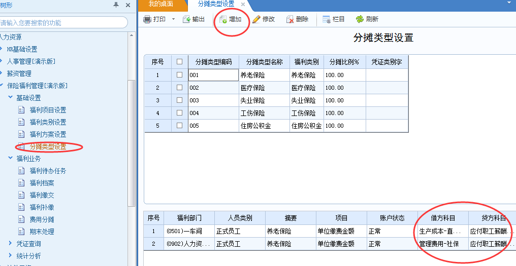 【保险福利管理】——【基础设置】——【分摊类型设置】