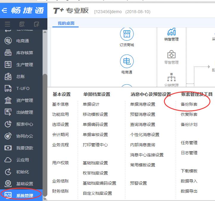 用友畅捷通T+软件备份当前账套操作说明
