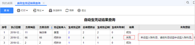 自动生凭证结果查询中能联查生成凭证的具体情况,及生成凭证失败的原因。