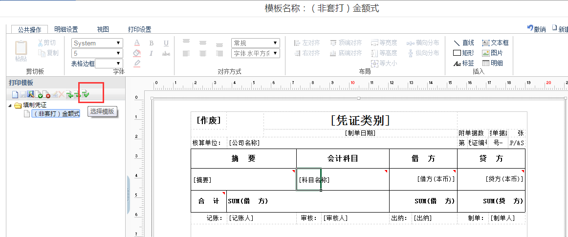 最近有会计在打印凭证时发下.打印出来的格式怎么打都不对.后来发下打印的模板不见了