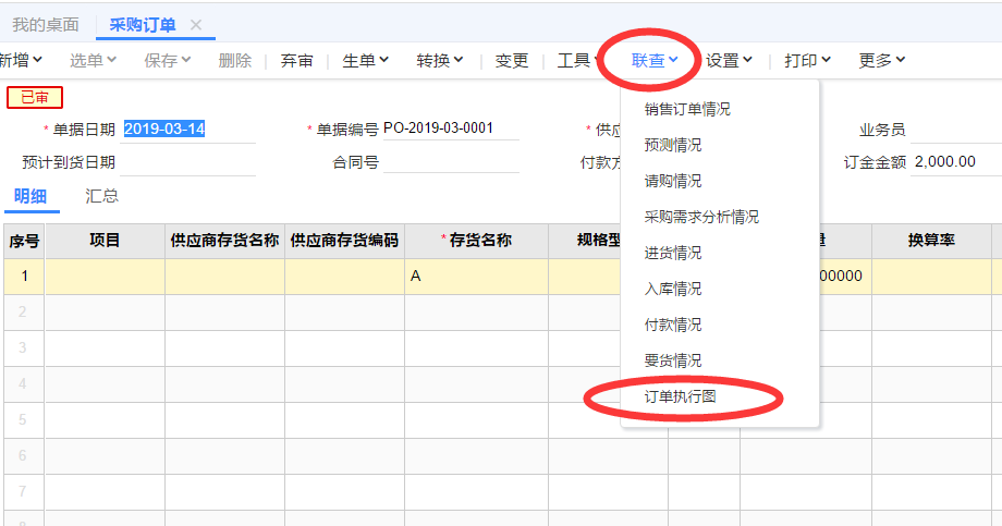 进入【订单执行图】中.不仅可以看见执行情况.还可以双击关联的单据直接打开该单据进行操作。