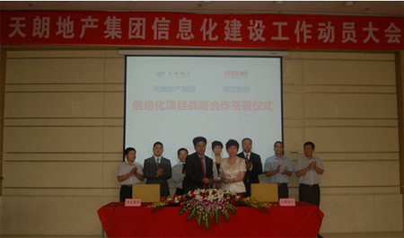 天朗地产集团高层领导高瞻远瞩,决定正式开始天朗地产集团的整体信息化建设,希望通过信息化建设,使天朗地产集团的管理水平,能够在2、3年内提高到一个新的高度,为天朗地产集团的全国布局提供支撑。天朗地产集团通过前期对用友公司的实地考察,以及后期双方技术、管理人员的交流、沟通与调研,经严格又全面的评估,更终选择用友软件作为企业信息化战略合作伙伴。
