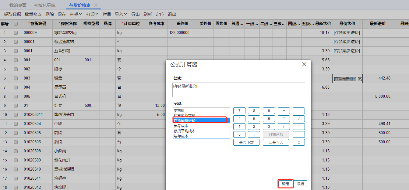 设置最低售价引用最新进价来控制