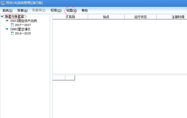 ②在登录服务器电脑的系统管理 使用admin用户登录,点击上方的工具栏中的视图下拉菜单