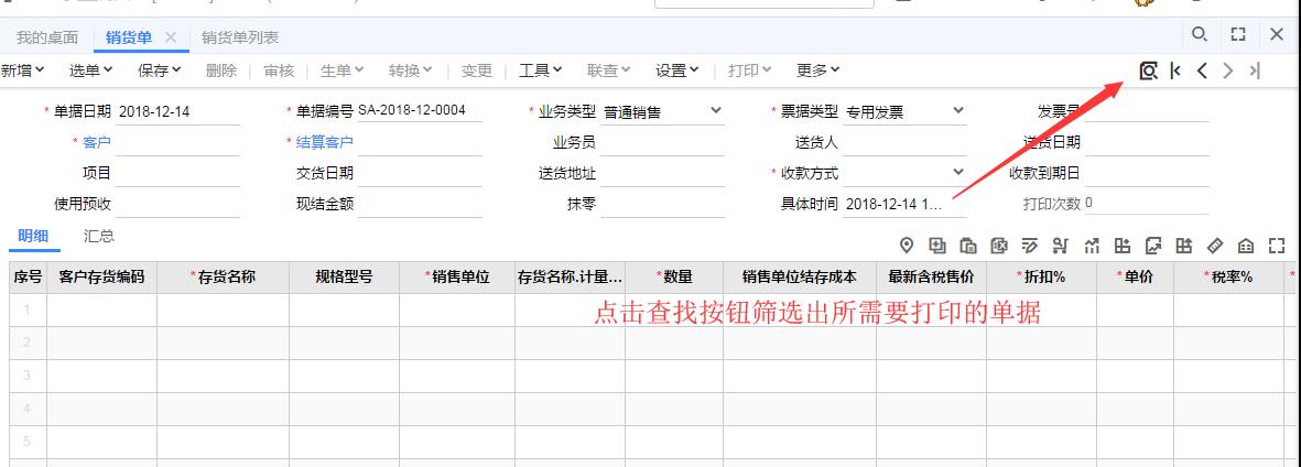 首先打开销货单,点击右上角的查询按钮