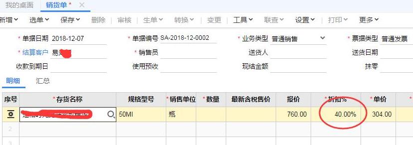 这样在做单据后,填写对应的客户折扣率就会自动带出