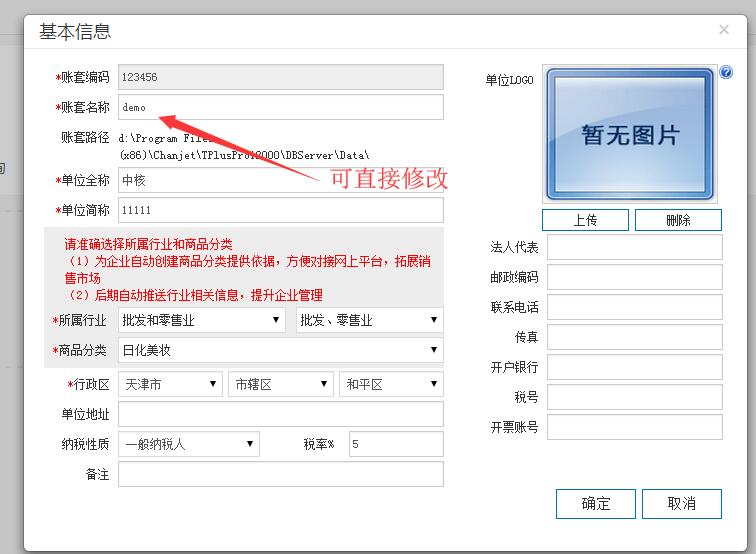 只需要使用账套主管登录软件,点击系统关系——基本信息里面直接可以修改账套名称以及相关的其他信息,包括地址电话传真邮箱等。
