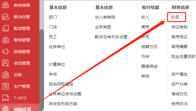 1、打开【基础设置】-点击【科目】