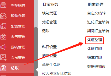 1、点击【总账】--【凭证整理】